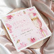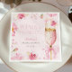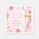 Serviettes Fête de Mariage au Prosecco Pétales de Rose avec un verre à prosecco doré et rose orné de délicates fleurs roses et d'un ruban rose. Le design est parfait pour un brunch chic sur le thème des Pétales et Prosecco et une célébration pétillante.
