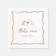 Cette belle décoration de fête de mariage italienne inspirée présente un lettrage cursif de style manuscrit accentué d'une bordure de ruban ondulé gribouillé en rouge tomate. Des illustrations dessinées à la main de pâtes papillon, de vin et d'un citron sicilien complètent le design pour un look estival de la Côte Amalfitaine. Ces serviettes élégantes de fête de mariage méditerranéennes présentent "c'est l'amour" en écriture manuscrite avec les noms des mariés en dessous.