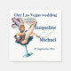Serviettes mariages Las Vegas amusantes et colorées. showgirl personnalisée et célèbre design de signe d'accueil avec facile à customiser modèles pour le nom du couple ainsi que leur date de mariage.