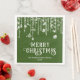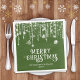 Des lampes à cordes vertes et blanches scintillent les serviettes de table de Noël avec une jolie serviette en papier fantaisie pour une fête de Noël festive.