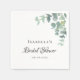 Un arrière - plan blanc chic décoré d'une verdure d'eucalyptus couleur vert, de feuilles et de sprigs. Personnalisez et ajoutez le nom de la mariée à être et la date. Lettres de couleur noire. Le texte : Fête des mariées est écrit avec un script de style à la main tendance.