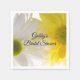 Les serviettes en papier Fête des mariées Two Daisies feront un joli accent à votre fête pour que la mariée soit. Ces élégantes serviettes jetables de wedding shower botanique personnalisées sont ornées d'une photo florale d'une fleur de marguerite jaune et blanche. Idéal pour une fête de jardin d'été.