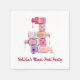 Fun paper party napkin feaks stacked bottles of nail polish in a variety of colors with customizable pink texte. Parfait pour des fêtes.
