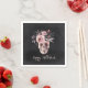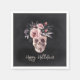 Un design éffrayant et chic de fête d'Halloween, avec une illustration crâne florale surmontée de fleurs d'aquarelle rose et violet sur un arrière - plan noir fumé.
