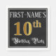 Ce design luxueux et soigné de serviette en papier à thème d'anniversaire comporte un nom personnalisable et le message "10th Birthday Party". Le grand numéro "10th" a une imitation/faux motif de couleur d'inspiration or, les mots "fête d'anniversaire" sont dans un texte de style script opulent, et l'arrière - plan est coloré noir par défaut (bien qu'il puisse être customisé). Des serviettes en papier élégantes et ornées comme celle-ci pourraient être utiles lors d’une fête d’anniversaire ou d’une fête célébrant le 10e anniversaire de quelqu’un. [~Z0000565]