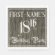 Ce design luxueux et élégant à thème d'anniversaire de papier napkin design comporte un nom modifiable et le message "18th Birthday Party". Le grand numéro "18e" et les mots "fête d'anniversaire" sont dans un texte de style script sophistiqué. L'arrière - plan a un motif imitation/imitation bois inspiré des grains. Des serviettes en papier d’une grande fantaisie, comme celle-ci, pourraient être utiles lors d’une fête d’anniversaire ou d’une célébration pour célébrer le 18e anniversaire de quelqu’un. [~Z0000564]