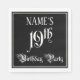 Ce design de serviette de papier d'anniversaire orné et fantaisiste comporte un nom personnalisé et le message "19e anniversaire fête". Le grand numéro "19ème" et les mots "Anniversaire" sont dans un texte de style script luxueux, et l'arrière - plan est coloré en noir par défaut (bien qu'il puisse être customisé). Des serviettes en papier élégantes et opulentes comme celle-ci pourraient être utilisées lors d’une fête d’anniversaire pour célébrer le dix-neuvième anniversaire de quelqu’un. [~Z0000563]