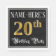 Ce design opulent et orné de serviette d'anniversaire comporte un nom personnalisable et le message "20th Birthday Party". Le grand numéro "20th" a un motif de couleur d'inspiration or imitation/fausse, les mots "Birthday Party" sont dans un texte de style script sophistiqué, et l'arrière - plan est coloré noir par défaut (bien qu'il puisse être customisé). Des serviettes en papier élégantes et luxueuses comme celle-ci pourraient être utilisées lors d’une fête d’anniversaire pour célébrer le 20e anniversaire de quelqu’un. [~Z0000565]