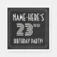 Ce design élégant des années 1920-1930 s'inspire du design de serviette de vingt-troisième anniversaire avec un nom personnalisé, un style art déco complexe inspiré du numéro "23ème", le message "BIRTHDAY PARTY !", et un motif frontalier composé de lignes. L'arrière - plan est coloré en noir par défaut, mais il peut être customisé à une couleur différente, si désiré. Des serviettes en papier à thème d'anniversaire comme celles-ci pourraient être utilisées à une fête d'anniversaire pour quelqu'un qui célèbre son vingt-troisième anniversaire. [~Z0000616]