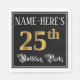 Ce design de serviette d'anniversaire orné et fantaisiste comporte un nom personnalisable et le message "fête du 25e anniversaire". Le grand numéro "25ème" a une imitation/faux motif de couleur d'inspiration or, et les mots "fête d'anniversaire" sont dans un texte de style script opulent. L'arrière - plan est coloré en noir par défaut (bien qu'il puisse être customisé). Des serviettes en papier luxueuses et opulentes comme celle-ci pourraient être utilisées lors d’une célébration d’anniversaire qui célébrerait le vingt-cinquième anniversaire de quelqu’un. [~Z0000565]