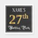 Ce design élégant et élégant de serviette de papier d'anniversaire comporte un nom personnalisable et le message "fête du 27e anniversaire". Le grand numéro "27th" a un motif de couleur d'inspiration or imitation/fausse, les mots "Birthday Party" sont dans un texte de style script luxueux, et l'arrière - plan est coloré noir par défaut (bien qu'il puisse être customisé). Des serviettes en papier luxueuses et ornées comme celle-ci pourraient être utiles lors d’une fête d’anniversaire qui se tient pour célébrer le 27e anniversaire de quelqu’un. [~Z0000565]