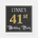 Cette élégante et opulente conception de serviette en papier à thème d'anniversaire comporte un nom personnalisé et le message "41st Birthday Party". Le grand numéro "41st" a un motif de coloriage d'inspiration or imitation/fausse, et les mots "fête d'anniversaire" sont dans un texte de style script luxueux. L'arrière - plan est coloré en noir par défaut (bien qu'il puisse être customisé). Des serviettes en papier luxueuses et fantaisistes comme celle-ci pourraient être utiles lors d’une fête d’anniversaire pour célébrer le 41e anniversaire de quelqu’un. [~Z0000565]