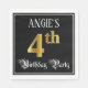 Ce luxueux et opulent design de serviette en papier sur le thème de l'anniversaire comporte un nom modifiable et le message "4th Birthday Party". Le grand numéro "4th" a un motif de coloriage imitation/faux d'inspiration or, et les mots "Birthday Party" sont dans un texte de style script sophistiqué. L'arrière - plan est coloré en noir par défaut (bien qu'il puisse être customisé). Des serviettes en papier d’une grande fantaisie, comme celle-ci, pourraient être utiles lors d’une fête d’anniversaire ou d’une célébration pour honorer le quatrième anniversaire de quelqu’un. [~Z0000565]