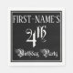 Ce design opulent et élaboré de serviette en papier à thème d'anniversaire comporte un nom personnalisé et le message "4th Birthday Party". Le grand nombre de "4ème" et les mots "fête d'anniversaire" sont dans un texte orné de style script. L'arrière - plan est coloré en noir par défaut (bien qu'il puisse être customisé). Des serviettes en papier élégantes et ornées comme celle-ci pourraient être utiles à une célébration d’anniversaire pour célébrer le quatrième anniversaire de quelqu’un. [~Z0000563]