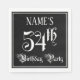 Ce design opulent et sophistiqué de serviette en papier à thème d'anniversaire comporte un nom modifiable et le message "54th Birthday Party". Le grand numéro "54ème" et les mots "fête d'anniversaire" sont en texte élaboré de style script. L'arrière - plan est coloré en noir par défaut (bien qu'il puisse être customisé). Des serviettes en papier de fantaisie comme celle-ci pourraient être utilisées lors d’une fête d’anniversaire organisée pour célébrer le 54e anniversaire de quelqu’un. [~Z0000563]