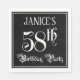 Ce design élégant et élaboré de serviette en papier sur le thème de l'anniversaire comporte un nom personnalisé et le message "58th Birthday Party". Le grand nombre de "58th" et les mots "Birthday Party" sont en texte orné de script, et l'arrière - plan est coloré en noir par défaut (bien qu'il puisse être customisé). Des serviettes en papier, comme celle-ci, peuvent être utilisées lors d’une fête d’anniversaire ou d’une fête pour célébrer le cinquantenaire de quelqu’un. [~Z0000563]