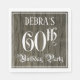 Ce design de serviette en papier orné et luxueux à thème fête d'anniversaire comporte un nom personnalisé et le message "60th Birthday Party". Le grand numéro "60e" et les mots "fête d'anniversaire" sont en texte élaboré de style script. L'arrière - plan est décoré d'un motif d'inspiration simili/imitation bois. Des serviettes en papier élégantes et sophistiquées comme celle-ci pourraient être utiles lors d’une fête d’anniversaire ou d’une célébration pour célébrer le 60e anniversaire de quelqu’un. [~Z0000564]