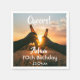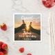 Une serviette pour une fête de 70e anniversaire pour un type. Photo de deux mains tenant des bouteilles de bière contre le coucher du soleil du soir. Garde la photo ou ajoute la tienne. Avec le texte : Cheers to, modèles pour un nom âge 70 et une date. Date de naissance ou date de la fête.