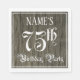 Cette conception sophistiquée et élaborée de serviette en papier sur le thème de l'anniversaire comporte un nom personnalisé et le message "fête du 75e anniversaire". Le grand numéro "75e" et les mots "fête d'anniversaire" sont dans un texte élégant de style script, et l'arrière - plan dispose d'une imitation/faux motif d'inspiration bois. Des serviettes en papier aussi luxueuses et ornementées pourraient être utiles lors d’une fête d’anniversaire ou d’une fête pour célébrer le soixante-quinzième anniversaire de quelqu’un. [~Z0000564]
