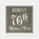 Ce design luxueux et élégant de serviette en papier à thème d'anniversaire comporte un nom personnalisable et le message "76th Birthday Party". Le grand numéro "76e" et les mots "fête d'anniversaire" sont en texte élaboré de style script. L'arrière - plan a un motif imitation/imitation bois inspiré des grains. Des serviettes en papier fantaisie et ornées comme celle-ci pourraient être utilisées lors d’une fête d’anniversaire qui se tient pour célébrer le 76e anniversaire de quelqu’un. [~Z0000564]