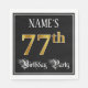 Ce design élégant et élégant de serviette en papier à thème d'anniversaire comporte un nom personnalisé et le message "77th Birthday Party". Le grand numéro "77th" a un motif de couleur d'inspiration or imitation/fausse, les mots "Birthday Party" sont dans un texte de style script luxueux, et l'arrière - plan est coloré noir par défaut (bien qu'il puisse être customisé). Des serviettes en papier, aussi somptueuses et ornées que celles-ci, pourraient être utilisées lors d’une fête d’anniversaire ou d’une célébration pour célébrer le soixante-dix-septième anniversaire de quelqu’un. [~Z0000565]