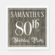 Cette élégante et élégante conception de serviette en papier à thème fête d'anniversaire comporte un nom personnalisé et le message "fête du 80e anniversaire". Le grand numéro "80th" et les mots "Birthday Party" sont dans un texte orné de style script. L'arrière - plan a un motif imitation/imitation bois inspiré des grains. Des serviettes en papier de luxe et élaborées comme celle-ci pourraient être utiles lors d’une fête d’anniversaire ou d’une fête célébrant le quatre-vingtième anniversaire de quelqu’un. [~Z0000564]