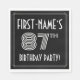 Ce design design design et Roaring Twenties a inspiré quatre-vingt-septième anniversaire de célébration/soirée papier serviette avec un nom personnalisé, un style art déco complexe inspiré numéro "87th", le message "BANTHDAY PARTY!", et une frontière multi-lignes. Par défaut, il dispose d'un arrière - plan de couleur noire, mais il peut être customisé à une couleur différente, si vous le souhaitez. Des serviettes en papier comme celles-ci peuvent être utilisées pour célébrer le 87e anniversaire de quelqu’un. [~Z0000616]