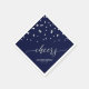 Cette serviette en papier personnalisée ajoutera une touche de style à votre journée spéciale. Ce design présente une écriture stylisée "à votre santé" avec un fond de confettis en forme d'hexagone. Décoration de fête parfaite pour une fête d'anniversaire moderne sur le thème bleu marine et argent. D'autres invitations et fournitures de fête assorties sont disponibles dans ma boutique BaraBomDesign.