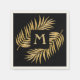 Feuilles de palmier tropical dorées scintillantes élégantes et stylées avec un monogramme doré sur fond noir sont représentées sur ces serviettes en papier - ECRU OU BLANC en
