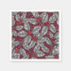 Serviette En Papier Feuilles gris sur rouge foncé