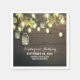 de belles serviettes rustiques en faux bois de papier avec lucioles en mâchoire suspendues aux lampes à cordes. Des serviettes en papier mariage pour votre thème mariage de automne.
