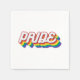 Ce dessin présente le mot fierté dans une police colorée style arc-en-ciel des années 70.