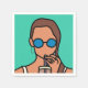 Graphique coloré amusant d'une ado qui boit du thé à bulle. Bleu clair design de couleurs modernes cool et tendance.