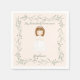 Communion Girl Prier Cette belle et douce première communion conception d'une petite brune priant paisiblement sur sa journée spéciale est sur une pêche pâle et arrière - plan sage. Accentué par un cadre feuille fleur sauvage. Chérissez les grands souvenirs de la première communion sainte de votre enfant avec ce magnifique design. Consultez les accessoires, la papeterie et les cadeaux de communion de la Première Sainte Communion correspondants.