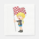 Un dessin d'une fille debout tenant un drapeau à damiers rouge et blanc. Cette conception semble vraiment efficace sur ce papier serviettes