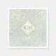 A watercolor background in shades of sage green is topped by an abstract of fine gold lines and glittering lighting effects to create the pieces of this beautiful wedding suite. The wedding paper napkin shown here also features a gradient, diamond-shaped frame to hold the bride and groom's initials and wedding date. Search ID867 to see other pieces and color choices for this set.