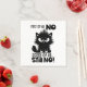 A funny, sarcastic black-and-white graphic design showcases a black cat with frazzled fur and a scowling expression. The black handwritten text says, "First of all, no. Second of all, still no!" Available on a wide variety of products, this design makes a perfect gift for cat lovers.