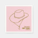 First rodeo with cowboy hat, pink background, 1st birthday napkins create a wild west themed first birthday. Pink background with minimalist brown cowboy hat and birthday details. Customize with your information. Matching party supplies, invitations and signs are available in the First Rodeo Pink Cowgirl 1st Birthday Baby Girl Collection in The Gathering Designs store.