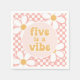 Cinq est une Vibe ! Retro checker imprimé avec serviettes de fête d'anniversaire Daisies en rose.