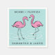 Ces serviettes sont ornées de quelques flamants roses qui pataugent dans l'eau avec une ville et un état ci-dessus, ainsi que deux noms ci-dessous pour vous permettre de personnaliser. La couleur arrière - plan bleu peut être modifiée en customisant.