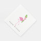 Serviettes illustrant un flamant rose portant une écharpe verte assortie d'un casquette avec flocon de neige. Le texte personnalisable dit, "Chaleureux Voeux".
