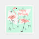 Serviette En Papier Flamants roses Retro Green Joyeux anniversaire