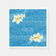 Serviettes de fête d'été Tropical Plumeria bleu fleur. Customisez avec tout texte. Éléments correspondants disponibles.