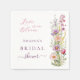 Un fond blanc chic. Décoré de fleurs sauvages en rose, violet, jaune. Personnalisez et ajoutez le nom de la future mariée. Texte : L'amour est en fleur.