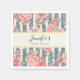 Serviettes en papier avec un beau motif représentant de jolies fleurs roses superposées sur un motif rayé composé de bandes bleues et crème.