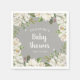 Serviette En Papier Fleurs blanches Baby shower gris neutre