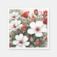 Serviette En Papier Fleurs blanches et rouges Elégante aquarelle