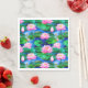Des serviettes en papier dans un motif de fleurs de lotus roses en fleurs et de coussins de lys vert luxuriant flottant sur une surface d'eau bleu richement texturée, dans des tons de rose et vert émeraude