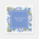 Jolies serviettes en papier pour shower de mariage en blanc et bleu bleuet, avec des fleurs de maïs entourant une zone de texte carrée bleue. Personnalisez le texte blanc personnalisé pour qu'il dise ce que vous voulez. Des invitations assorties sont disponibles.