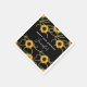 Fête d'anniversaire ou autres serviettes en papier événementiel avec un motif élégant et élégant. Joli tournesol jaune et feuilles verts entourés de fines chaînes d'or. Arrière - plan noir. Personnalisez avec votre propre texte.